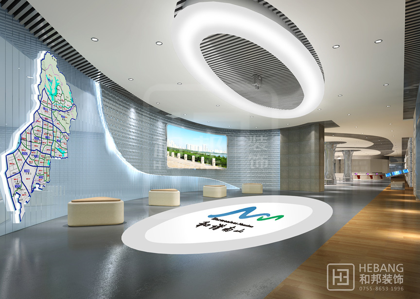 設(shè)計(jì)說明本案位于南山區(qū)愛心大廈2樓。圍繞區(qū)委決策,以建設(shè)“一平臺(tái)兩中心”為基礎(chǔ),實(shí)現(xiàn)四項(xiàng)功能。打造現(xiàn)代化南山區(qū)社會(huì)建設(shè)服務(wù)大廳,積極推動(dòng)并全面展示全區(qū)社會(huì)建設(shè)情況。