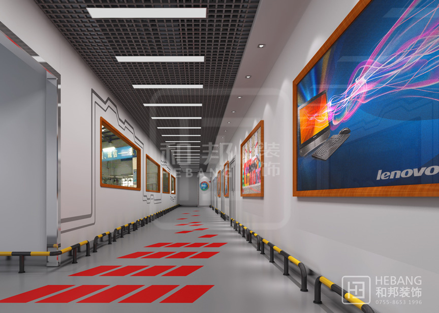 設(shè)計(jì)說明現(xiàn)代感與科技感相結(jié)合,墻面飾有太空艙紋理結(jié)合地面的紅色指引讓人如臨太空站,一種激動(dòng)人心的時(shí)刻不正是進(jìn)到展館的時(shí)候嗎?