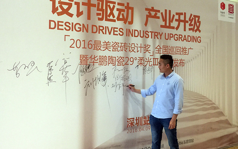 2016年4月9日,“產品驅動產業升級”高峰論壇暨“最美瓷磚設計獎”在廣東深圳成功舉辦,我司總經理劉擁軍及經理劉作平邀參與了這次活動,并在會上發表講話,以自己在設計領域所取得的經驗和成果為支撐,深入剖析了設計與產品之間的跨界融合。該論壇已被廣東省設計活動整體性區域品牌“設計廣東”納入平臺框架,作為廣東省“設計走進產業集群”的一項重要活動在全球范圍內深入展開。“設計驅動產業升級”已成為中國優秀設計師進一步發展的重要趨勢和手段。